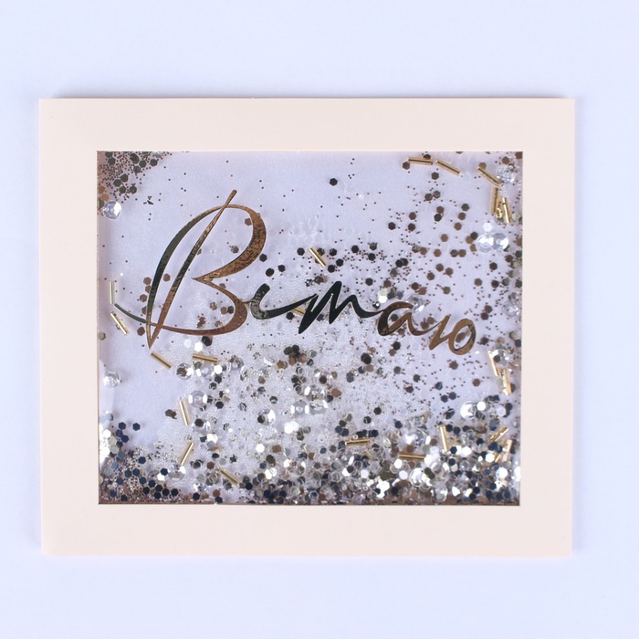 Вікно виготовлене з щільного прозорого пластика і наповнене дрібним перламутровим декором.