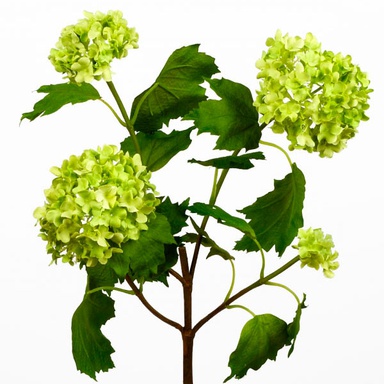 У квітки вібурнум розкішні кулясті суцвіття світло-салатового відтінку. Завдяки його формі, вібурнум використовують для додання пишності і чуттєвості букетів. Щільно зібрані парасольки вібурнум наповнені витонченістю і додають квіткових композицій особливий стиль і грацію. Ось чому його так часто використовують в найрізноманітніших букетах.