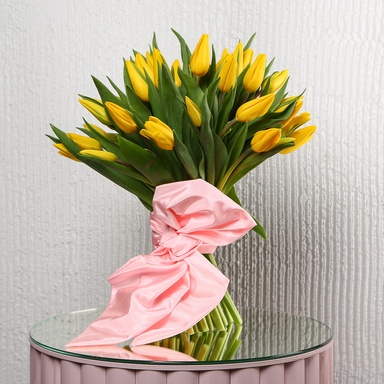 Подаруйте яскраві емоції разом із букетом 51 жовтий тюльпан — нехай кожна квітка говорить про ваші теплі почуття.
